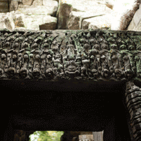 What is “KIRTI:" An iconographic motif found above the doorways of temples across South and Southeast Asia. The story goes that the god Shiva creates a demon of terrible appetite, with bulging eyes and unhinged jaw. But no sooner than creating the demon, Shiva orders it to eat itself. Obediently, the demon chews from its toes until only its floating head remains. Shiva is amazed. He saw in this monstrous self-consuming energy the perfect embodiment of life itself. Shiva declared the demon Kirti-Mukha – “glorious face” – and orders that it mark the threshold to his temples. As Shaivism expands from South Asia into Southeast Asia, the Kirti-Mukha image inevitably is transformed with new names and myths. For the Khmers, it became Rahu, the demon who eats the moon; for the Javanese, it became Batara Kala, lord of the underworld; for the Buddhist kings that co-opt Hindu temples, it became Kala, or Yama, incarnation of all-consuming time. Eventually, it was imported back into South Asia, changed in myth and aspect. Even now the face transforms.
